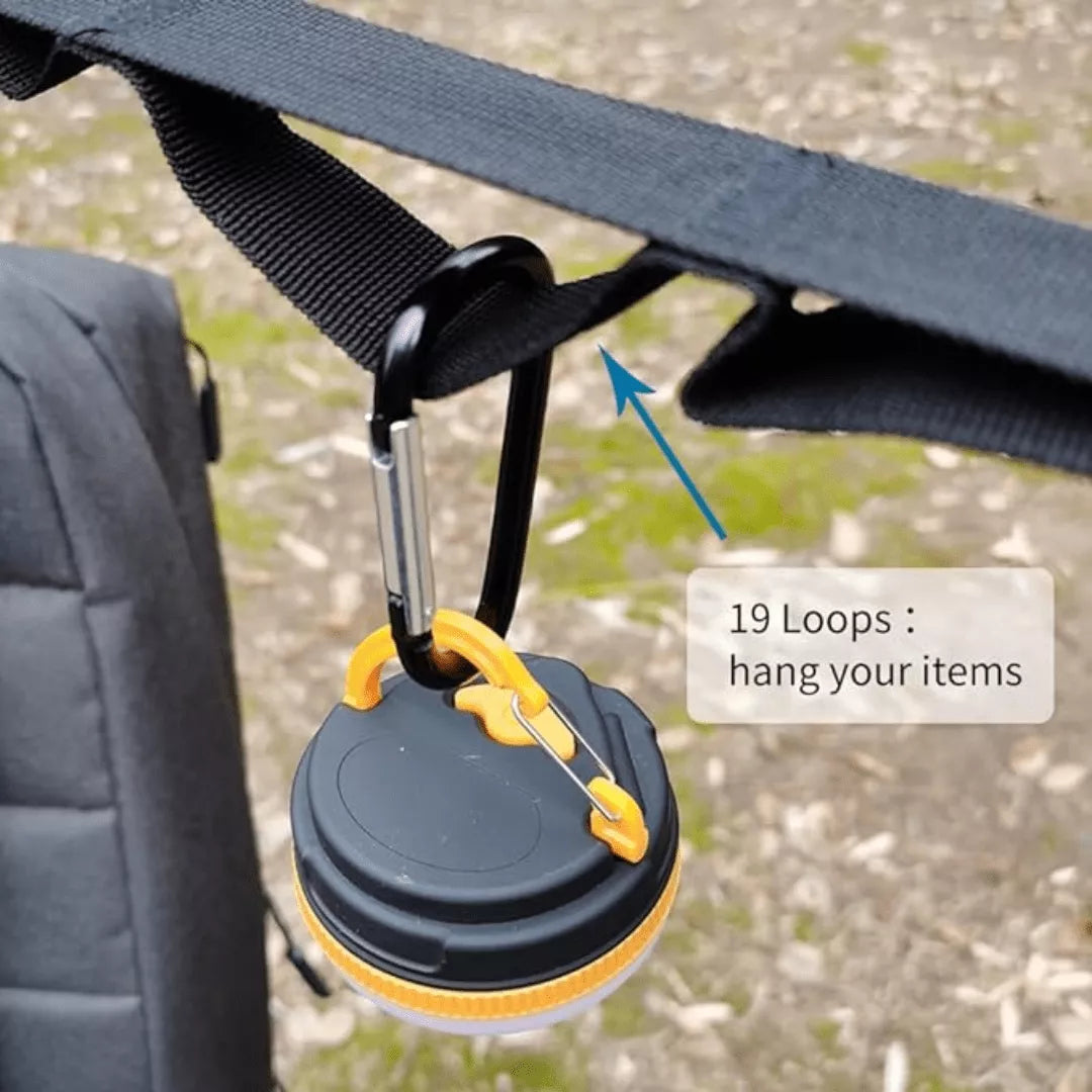 The Outdoor Camping Hanging Strap Rope features 19 reinforced loops, giving you total freedom to organize your lanterns, cookware, clothes, or accessories exactly where you need them.