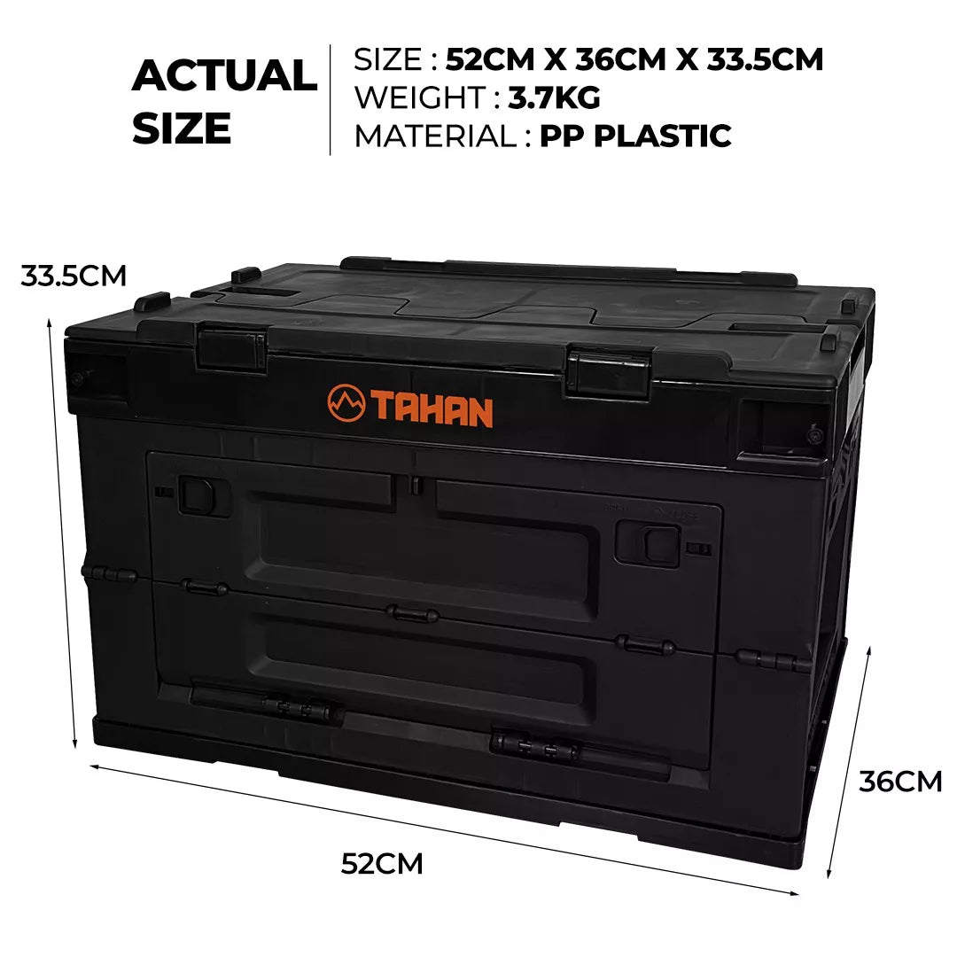 Designed with convenience in mind, the TAHAN 55L LoadOut Gear Case folds down to a compact size of 9.8cm in height. Its built-in handles ensure effortless transportation, making it ideal for both outdoor adventures and indoor organization.